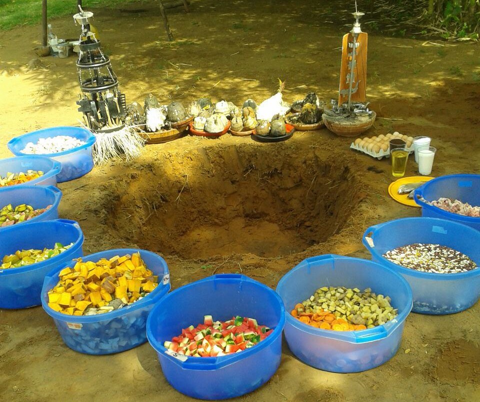 Ceremonia de comida a la tierra Es un ceremonial solemne donde los seguidores de nuestra cultura dan a la naturaleza todo aquello que nos da, la cultura se basa en ritos o rituales que realizaban los ancestros como resultado de comprensión colectiva y vivencias en la práctica de la cultura, las tribus africanas ven al mundo espiritual de una forma diferente a como lo vemos en nuestra parte occidental, ya que ellos asociaban los elementos con fuerzas espirituales, de allí se deriva por qué se le da de comer a la tierra. Leer mas